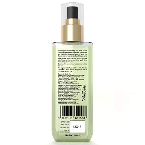 Body Cupid Cucumber & Melon Body Mist is a premium product with a crisp, fresh & fruity fragrance. Spraying it on not only refreshes the skin, it also dispels the blues. This is truly a ‘mood boost in spray bottle’ body mist.