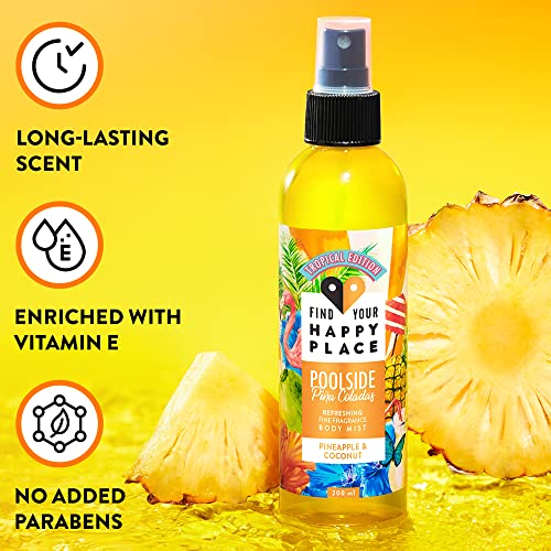 Find Your Happy Place – Poolside Piña Coladas Body Mist Pineapple & Coconut with Vitamin C | Long Lasting Fragrance 200ml