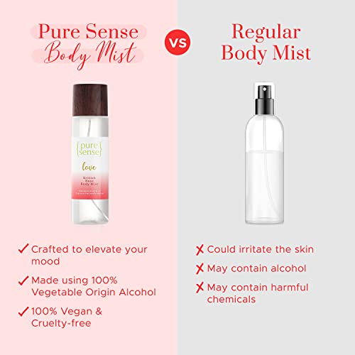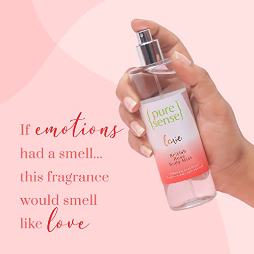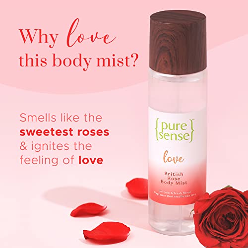 Add the Pure Sense Love British Rose Body Mist to your everyday routine and envelope your senses in this elegant & floral fragrance that ignites the feeling of Love. The elegant & floral fragrance of British Rose is sure to delight your senses. Crafted with passion, this delicate blend of woody musky notes along with the elegant white flower and delicate Red & Green Rose is sure to make you feel special and spark the feeling of Love within you. This is your go-to fragrance when you desire to feel alluring & irresistible all at once.That is not all, this luxurious body mist is long-lasting (lasts upto 3 – 4 hrs) and is an instant mood changer. Made consciously, without any harmful chemicals like sulphates & parabens, this PureSense Love British Rose Body Mist is gentle on your skin and pure above it all. This body mist is not tested on animals and is cruelty-free.
