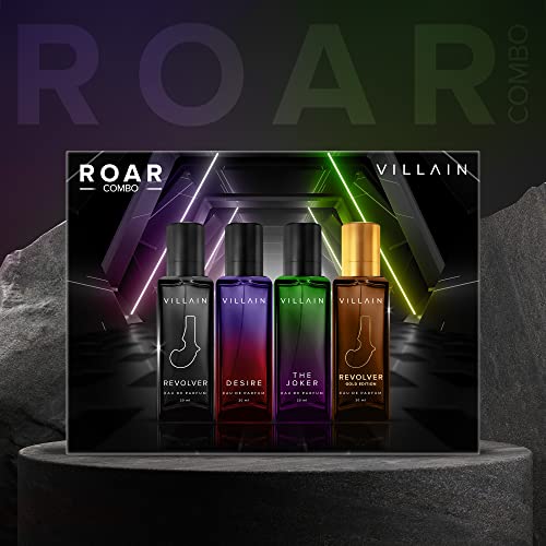 VILLAIN ROAR Combo – 4 x 20ml | Premium Perfume Gift Set For Men | Eau De Parfum | Long Lasting Fragrance